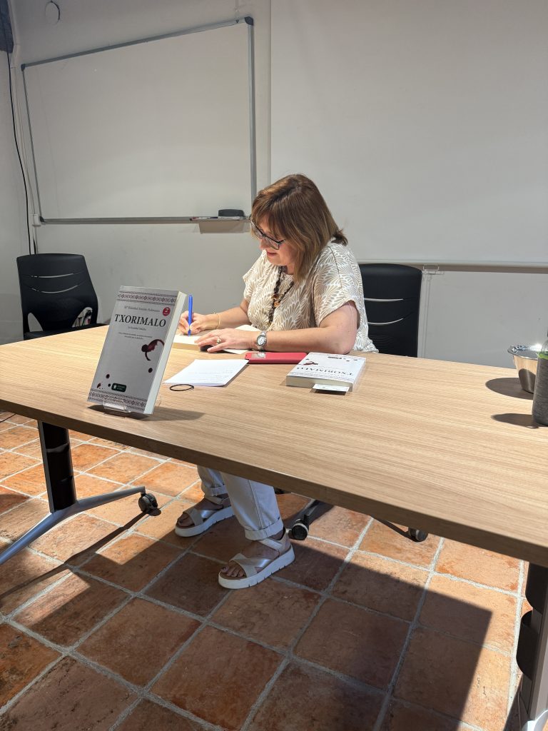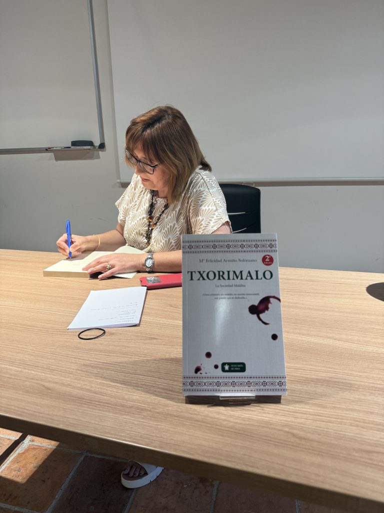 El lunes 20 de octubre, la escritora y compañera de este blog, Felicidad Armiño, ha presentado su primera novela «Txorimalo» en su localidad de residencia: Bergara.
